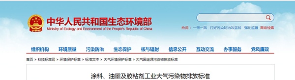 生態(tài)環(huán)境部發(fā)布《涂料、油墨及膠粘劑工業(yè)大氣污染物排放標(biāo)準(zhǔn)》
