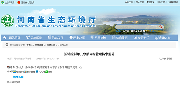 河南省生態(tài)環(huán)境廳、河南省市場(chǎng)監(jiān)督管理局聯(lián)合發(fā)布了《流域控制單元水質(zhì)目標(biāo)管理技術(shù)規(guī)范》的公告