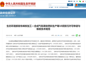 生態(tài)環(huán)境部發(fā)布煤炭加工-合成氣和液體燃料生產(chǎn)等10項排污許可申請與核發(fā)技術(shù)規(guī)范