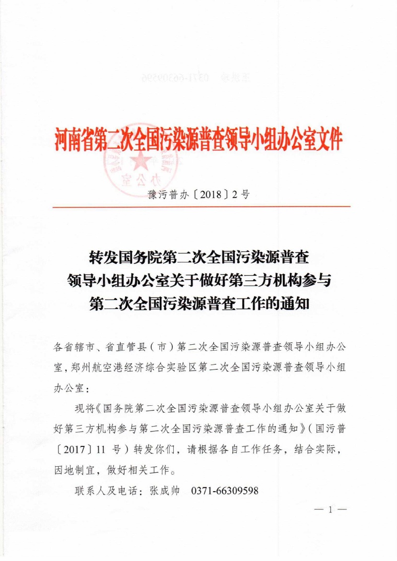 豫污普辦【2018】2號(hào)轉(zhuǎn)發(fā)國(guó)務(wù)院第二次全國(guó)污染源普查領(lǐng)導(dǎo)小組辦公室關(guān)于做好第三方機(jī)構(gòu)參與第二次全國(guó)污染源普查工作的通知