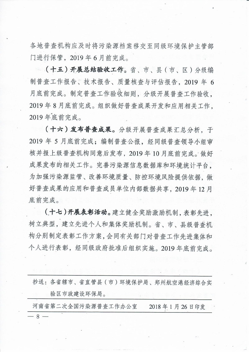 豫污普辦【2018】5號關(guān)于印發(fā)河南省第二次全國污染源普查工作要點的通知