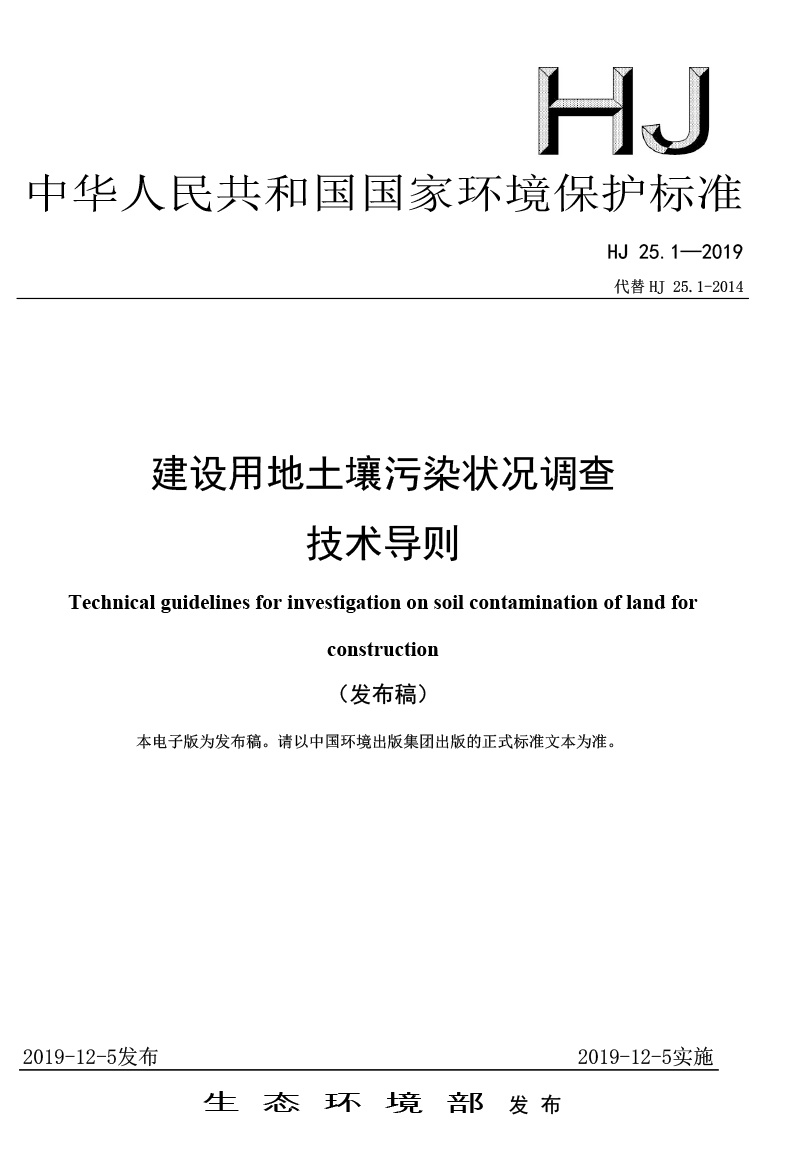 建設(shè)用地土壤污染狀況調(diào)查技術(shù)導(dǎo)則( HJ 25.1-2019 )
