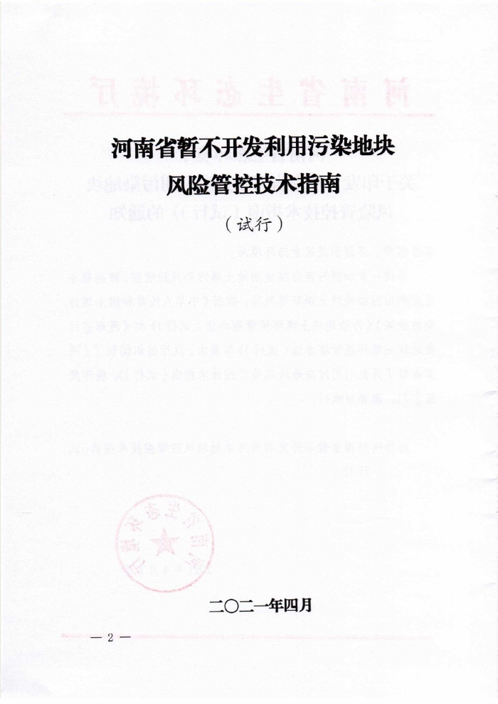 2021.4.1關(guān)于印發(fā)《河南省暫不開發(fā)利用污染地塊風(fēng)險管控技術(shù)指南(試行)》的通知
