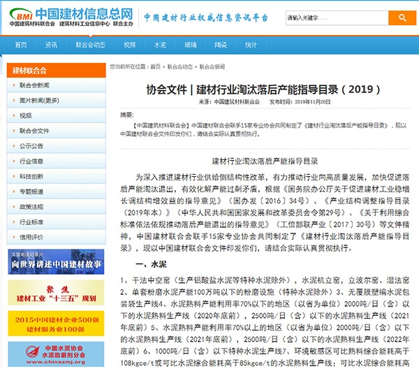 中國建材聯(lián)合會(huì)發(fā)布《建材行業(yè)淘汰落后產(chǎn)能指導(dǎo)目錄(2019版)》
