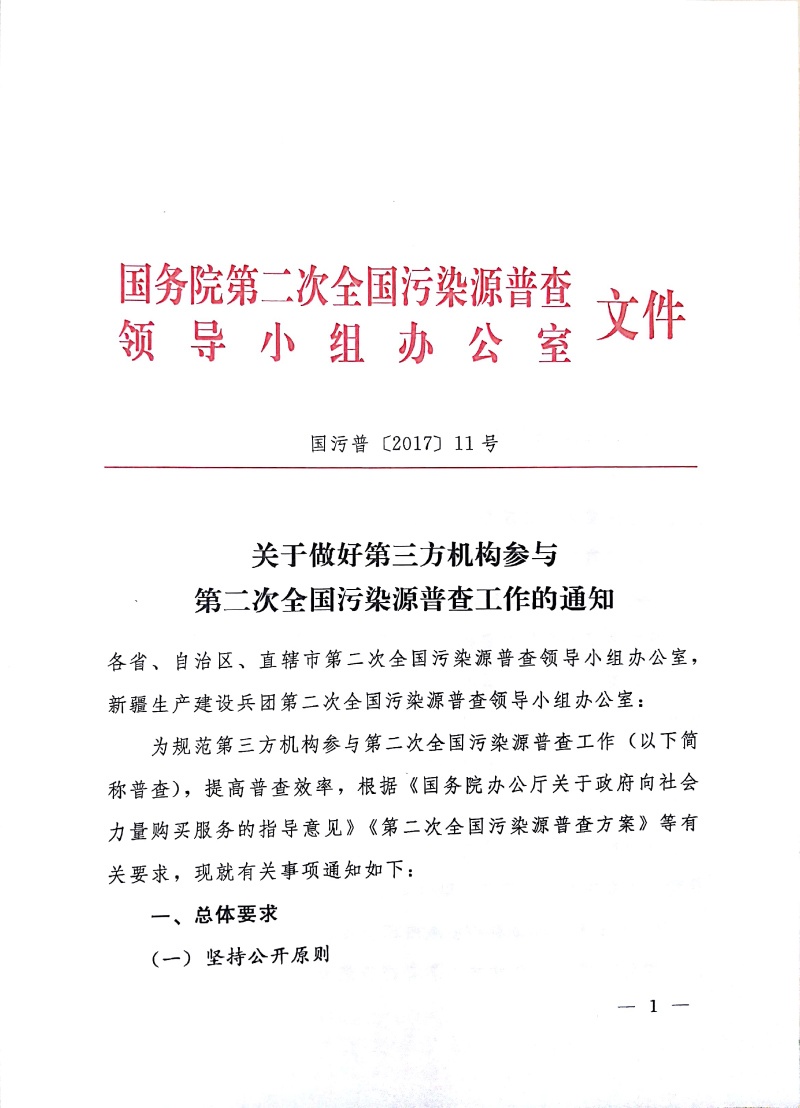 國污普【2017】11號關(guān)于做好第三方機(jī)構(gòu)參與第二次全國污染源普查工作的通知