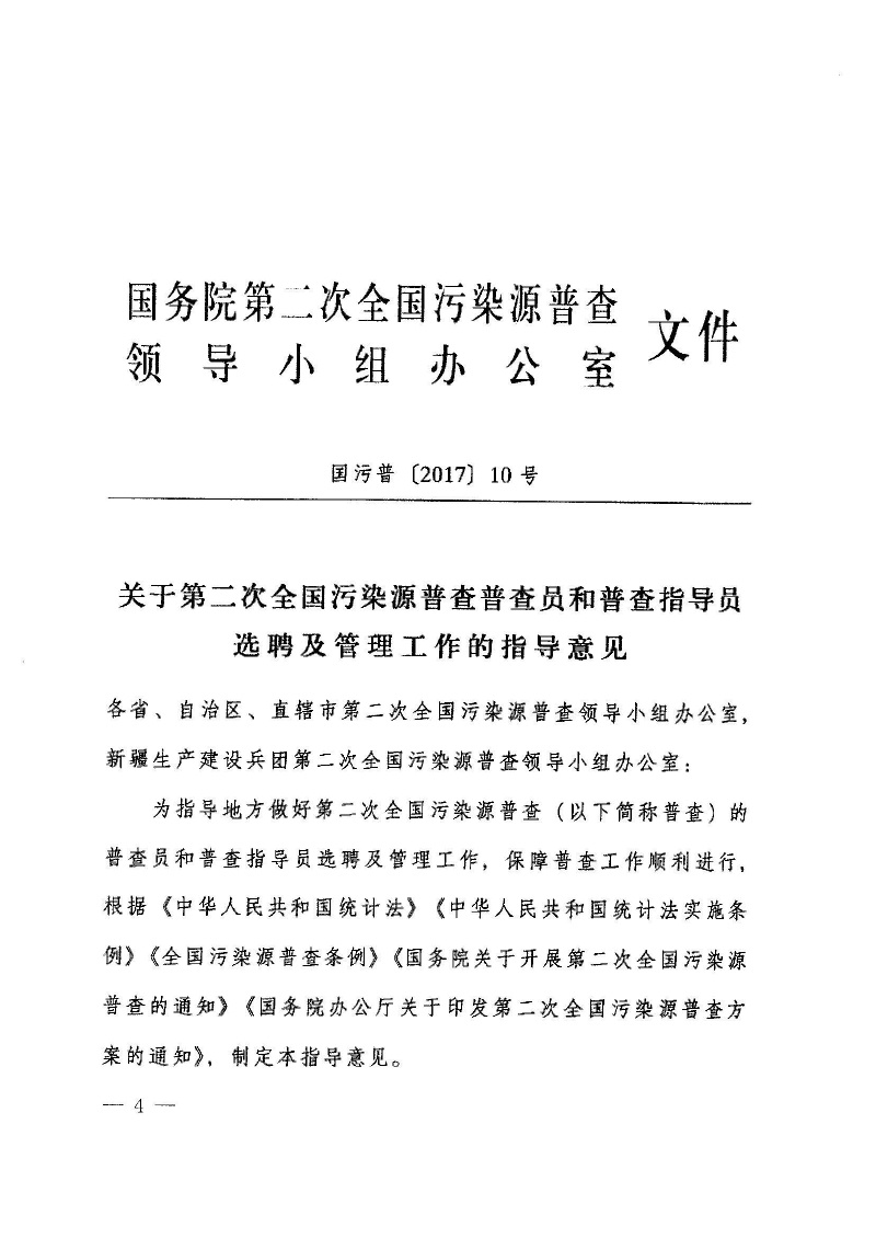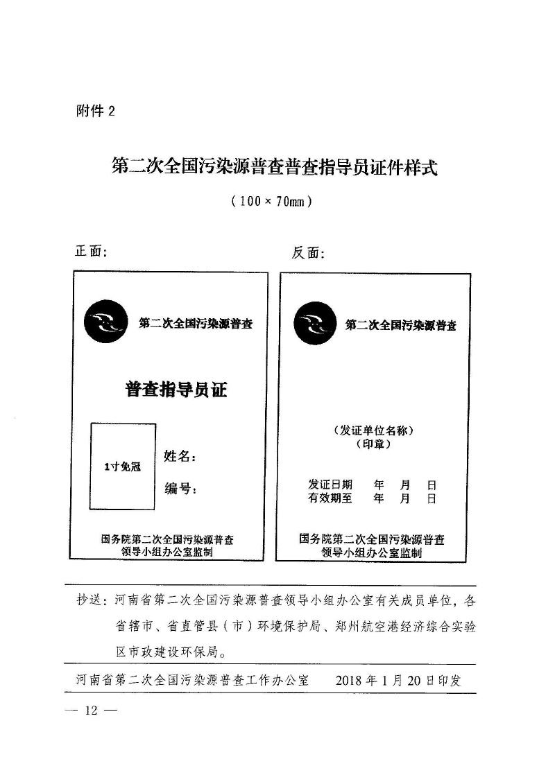 豫污普辦【2018】4號轉發(fā)國務院第二次全國污染源普查領導小組辦公室關于第二次全國污染源普查普查員和普查指導員選聘及管理工作指導意見的通知