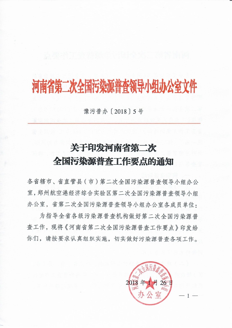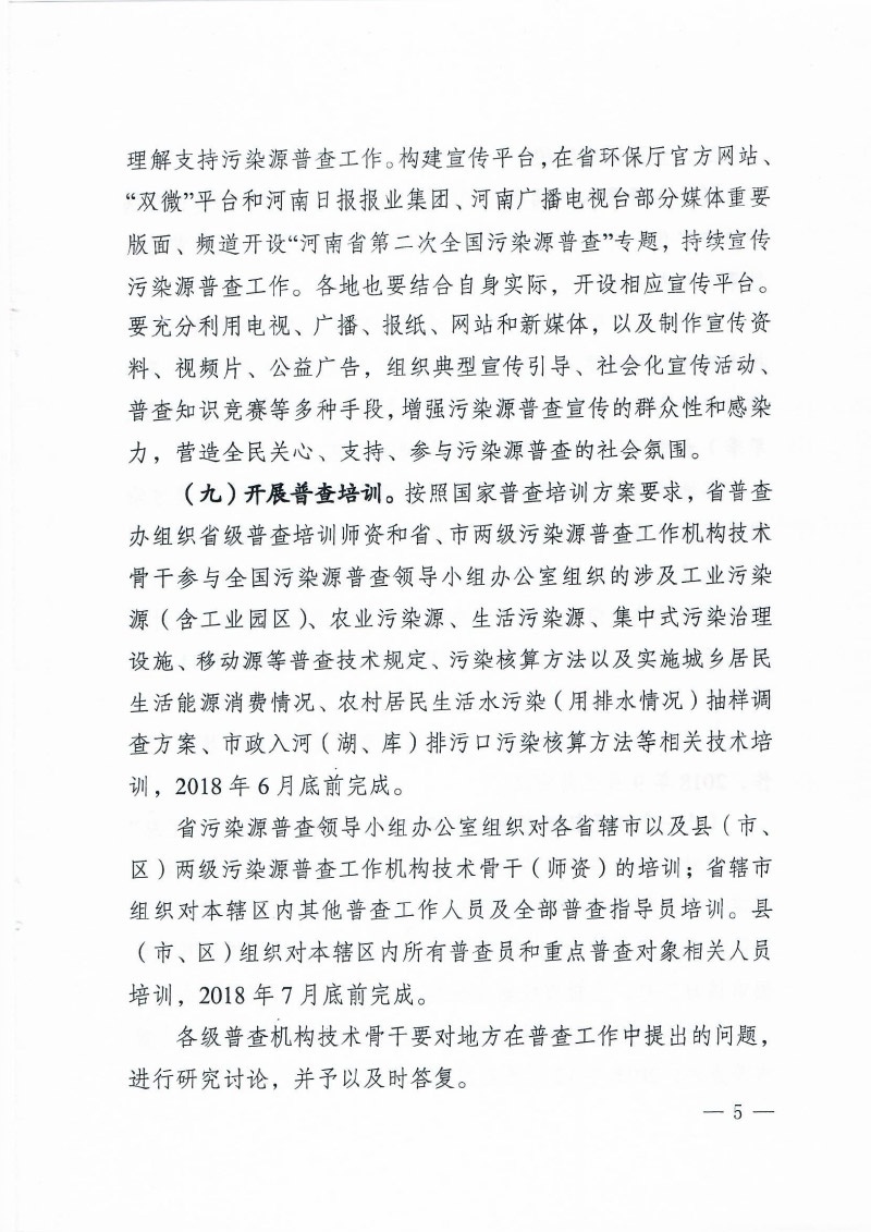 豫污普辦【2018】5號關(guān)于印發(fā)河南省第二次全國污染源普查工作要點的通知