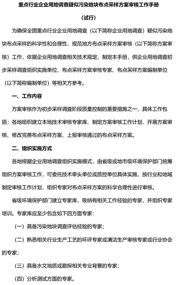 重點(diǎn)行業(yè)企業(yè)用地調(diào)查疑似污染地塊布點(diǎn)采樣方案審核工作手冊(cè)